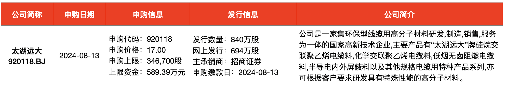 值得注意的是,太湖远大的新股代码为“920118”,不仅是万达轴承之后、第二只“920新股”,也是北交所下半年发行的第一只新股。