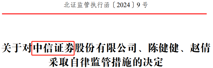 鉴于上述事实,根据有关规定,北交所对中信证券及项目保荐代表人陈健健、赵倩采取出具警示函的自律监管措施。