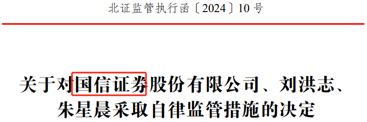 鉴于上述事实,根据有关规定,北交所对国信证券、刘洪志、朱星晨采取出具警示函的自律监管措施。