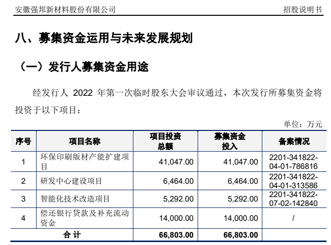 为此,强邦新材拟IPO募资扩产增强竞争力。招股书显示,公司此次拟发行募资6.68亿元用于相关募投项目,以扩大在绿色环保印刷版材方面的生产能力,并增强研发创新能力,提高自动化、智能化生产水平与效率。