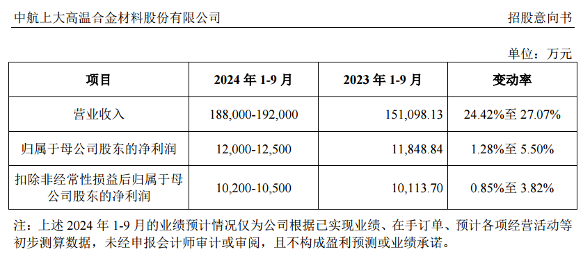 招股意向书显示,上大股份预计2024年前三季度的净利润为1.20亿元至1.25亿元,同比增长1.28%至5.50%。