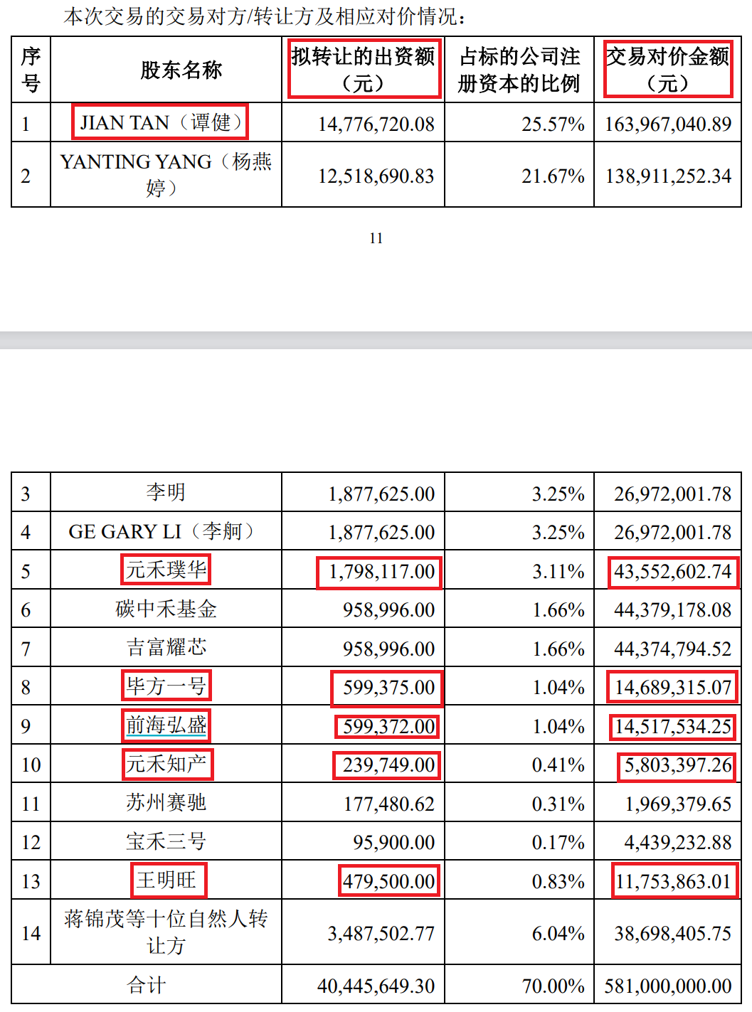 根据公告披露的相关数据,此次交易完成后,苏州赛微原实控人谭健所转让的出资额将获得约10倍回报;元禾系的两只基金、欣旺达系基金及其实控人王明旺,都将获得约23倍回报。