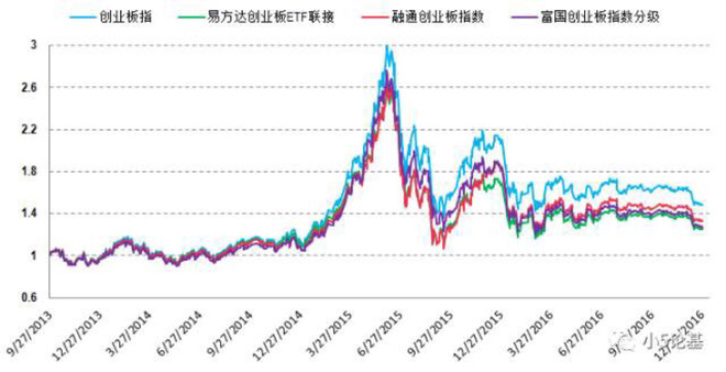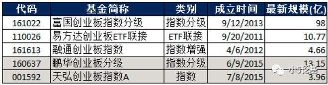 其中第三个是选取了创业板指数中的一半50个来构成的ETF,甚至不是真正的创业板指数;