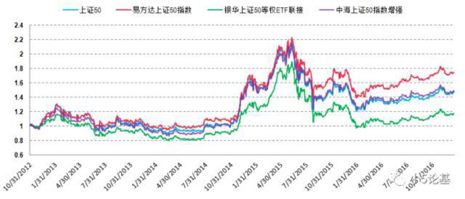 如果从这个角度来继续的话,易方达上证50指数似乎更像被增强过的,它明显比其他的指数(包括真实指数)都要走的好。最为关键的是,它的盘子够大。
