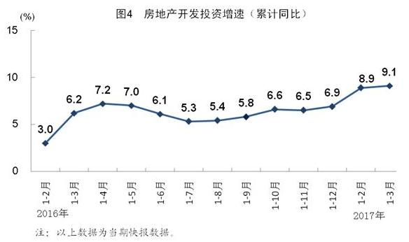 1-3月份全国房地产开发投资同比增长9.1%,创2015年3月以来最快增速。1-3月份住宅销售额同比增长20.2%。1-3月份房屋新开工面积同比增长11.6%。