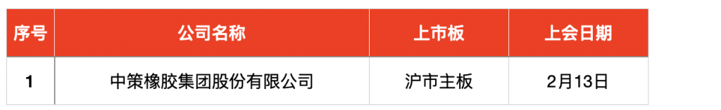 上交所官网显示,上交所上市审核委员会定于2月13日召开2025年第2次上市审核委员会审议会议,审议的发行人为中策橡胶。