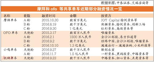 记者对比发现,在共享单车背后的投资方,无论是资金规模、频率还是背景,都是能量巨大的队伍。