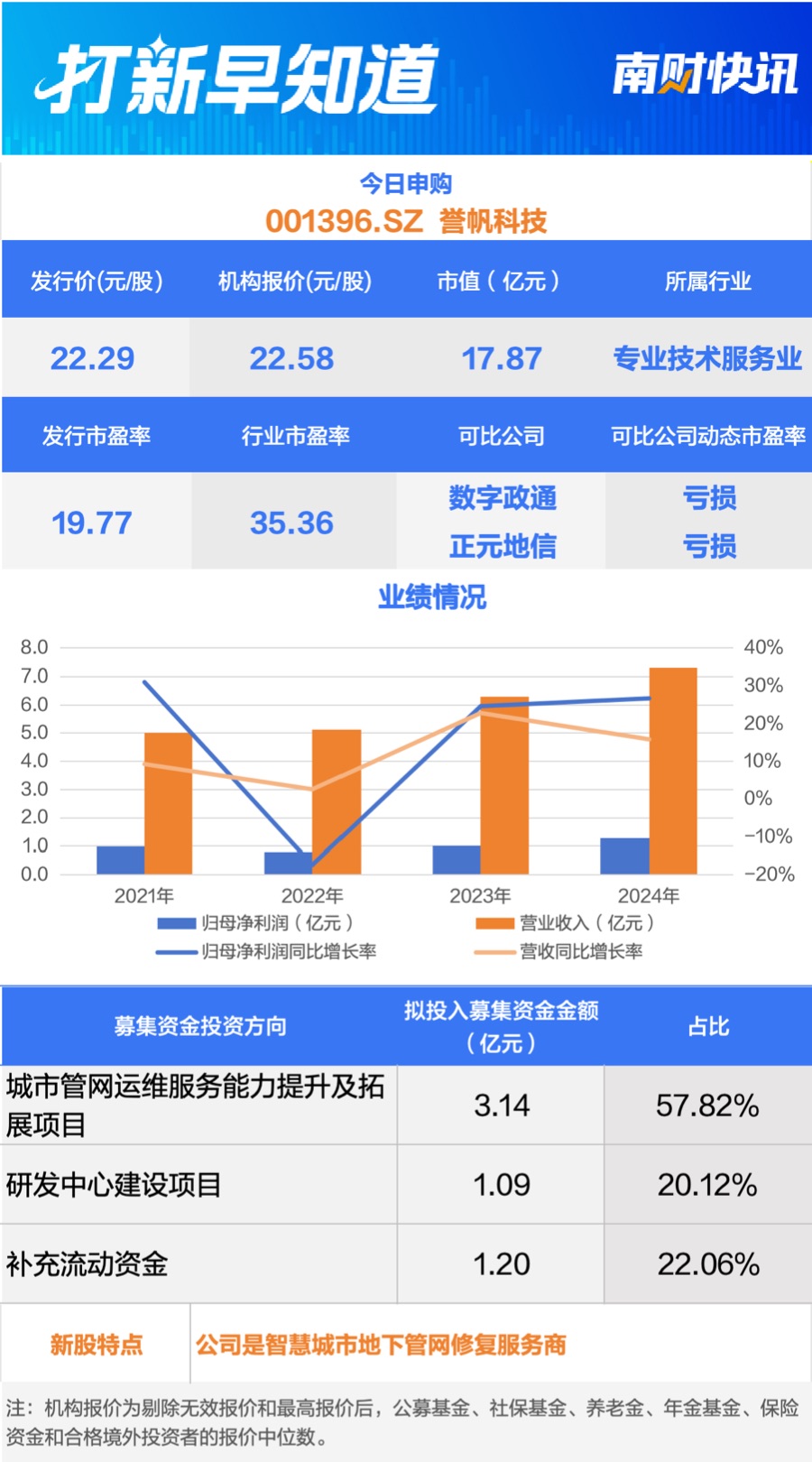 12月19日,可申购深市主板的双欣环保(001369.SZ)、誉帆科技(001396.SZ)以及科创板的强一股份(688809.SH)。另有一只新股上市,为科创板的优迅股份(688807.SH)。