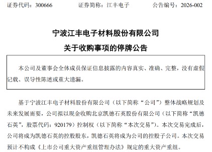 筹划“A吃A”!江丰电子拟收购凯德石英控制权!两家股票今起停牌