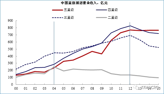 图 酒店行业中,五星级酒店的营业收入与其他星级拉开差距