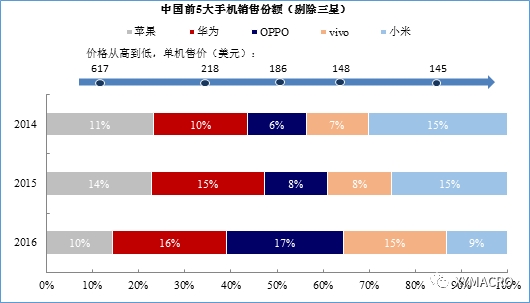 图 国产手机价格较高、有品牌效应的品牌份额扩张