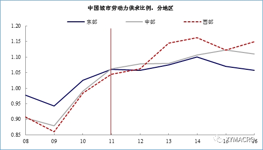 图 内陆城市的劳动力供需结构开始好于东部
