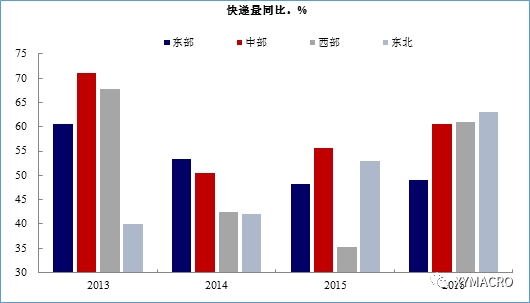 图 快递量也显示出类似的趋势:内陆重要性上升