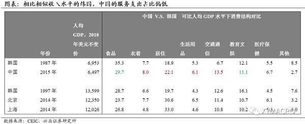 根据海外经验,在人均GDP 从6000美元继续上升时,服务支出仍会继续上升(数据请参见附录)。而从供给端来看,经过过去城镇化的推进,中国东部地区的人口密度已较高,这本身就有利于降低服务提供的边际成本,反过来也会刺激服务的需求。