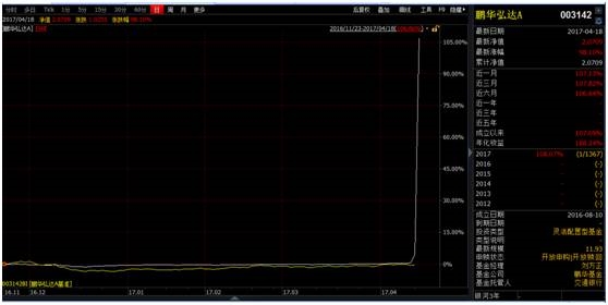 而经过两天的赎回,鹏华弘达A所剩规模应该已经很小,而去年底该基金份额达11.99亿份。而截至今日,鹏华弘达A今年以来单位净值增长率已达到108.07%,超过此前同样因巨额赎回净值飙升的华安稳固收益A(今年以来单位净值涨45.69%)、高居所有基金收益率首位,当然,两只基金的高收益都是巨额赎回带来的,而非投资本身。