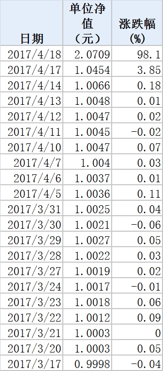 18日晚间公布的基金净值显示,鹏华弘达A单位净值从4月17日的1.0454元大幅跃升到今日的2.0709元,18日单位净值涨幅高达98.1%。而该基金的C份额——鹏华弘达C单位净值不仅没有上涨,反而下跌了0.03%。这样就意味着,和之前众多单位净值突然暴涨的基金一样,鹏华弘达A在本周一遭遇了巨额赎回,18日赎回确认,赎回费计入已经所剩不多的基金资产,从而带来份额净值的飙升。