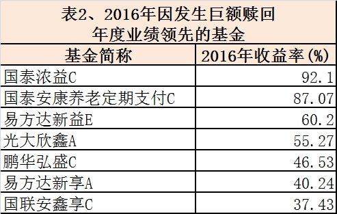 公募基金短期内遭遇巨额赎回的情况从去年开始大量出现,去年收益最高的几只基金都是巨额赎回基金(见表2).