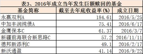 而在去年成立的不少新基金在打开申赎后不久便遭遇巨额赎回,带来净值的非正常增长,其中最离谱的当属去年5月25日成立的永赢双利A,截至去年底,该基金因为巨额赎回导致成立以来收益率高达184.61%,创出因巨额赎回带来的收益率新高,至今无人能望其项背。