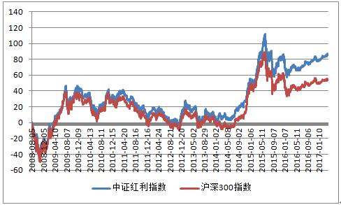 Choice统计显示,从2008年8月至今中证红利指数涨幅高达85.58%,远远高于沪深300指数。