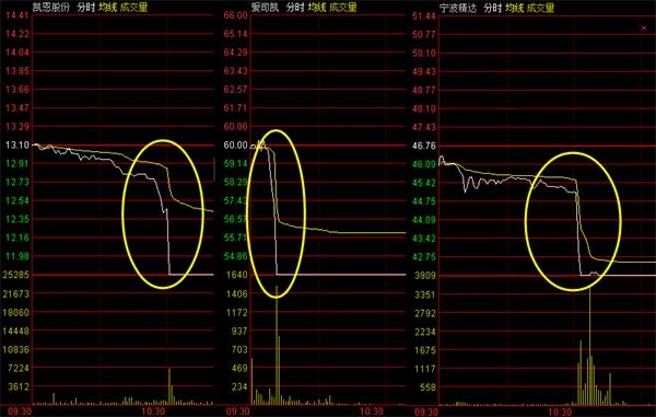 上海天洋、国光股份、银鸽投资等个股加入闪崩行列。