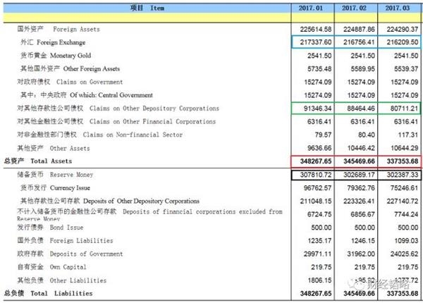周三市场最热的话题莫过于央行缩表了,先来看一张来自央行官方网站的一季度“货币当局资产负债表”。