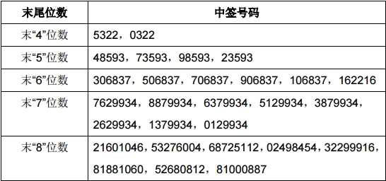 据上交所网站20日消息,迪贝电气首次公开发行股票网上中签结果出炉,具体如下: