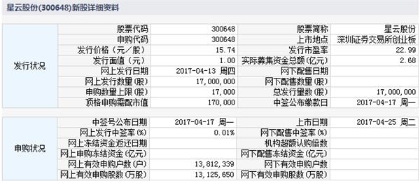根据交易所公告,福建星云电子股份有限公司于2017年4月25日起在深圳证券交易所创业板上市。