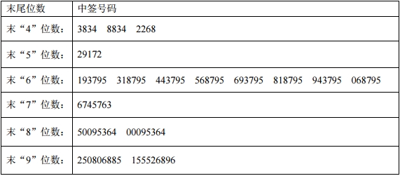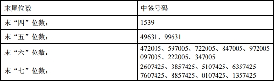 凡参与网上定价发行申购太龙(福建)商业照明股份有限公司股票的投资者持有的申购配号尾数与上述号码相同的,则为中签号码。中签号码共有31574个,每个中签号码只能认购500股太龙(福建)商业照明股份有限公司股票。