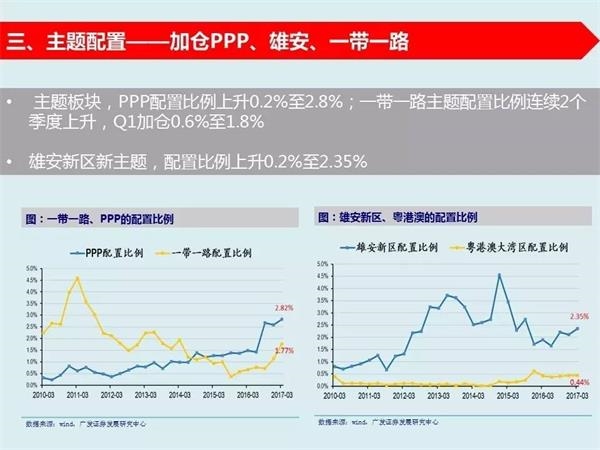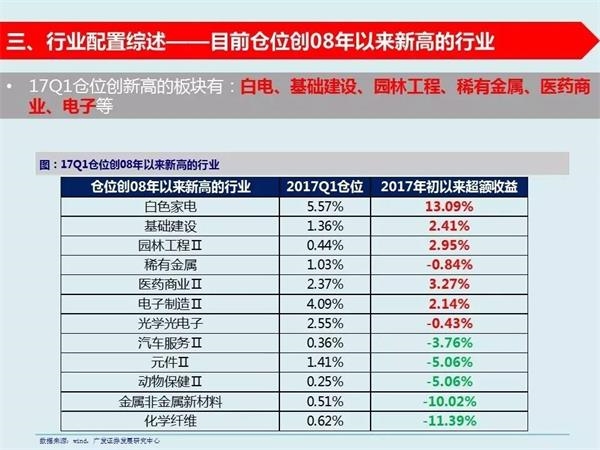 7、配置比例创历史新高和接近历史底部的行业——基金一季报配置比例创新高的板块有白电、基础建设、园林工程、稀有金属、医药商业、电子等;基金一季报配置比例接近底部的板块有房地产、通信运营、建材、化药、专业零售等。
