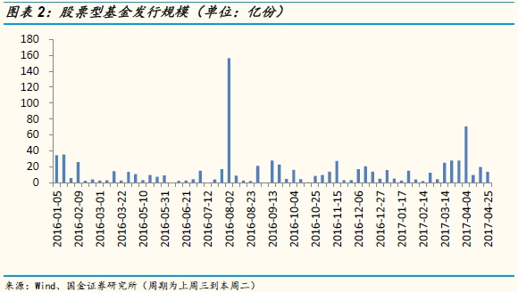基金发行数量下降,股基发行规模略降。本期(0419-0425,下同)新发基金27支,数量小于上期(0412-0418,下同)(36支),其中债券型(债券型、偏债混合型等)16支,平均规模2.88亿(上期18支,平均规模2.29亿);股票型(普通股票型、偏股混合型等)3支,平均规模4.50亿(上期6支,平均规模3.29亿);灵活配置本期未发行(上期7支,平均规模1.92亿).