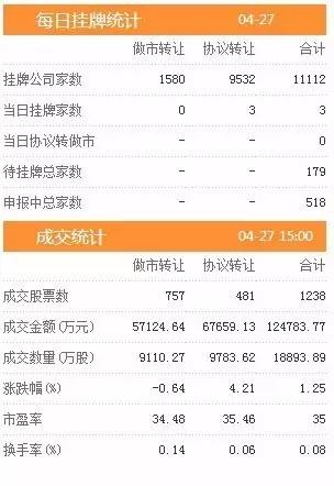 昨日新增挂牌企业3家,截至2017年4月27日,挂牌企业总数达到11112家。