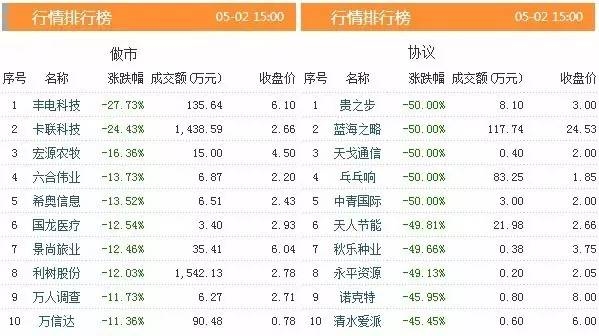昨日共有1029只股票发生交易,成交金额7.69亿元,做市转让成交3.34亿元,协议转让成交4.36亿元,成交数量14150.54万股。