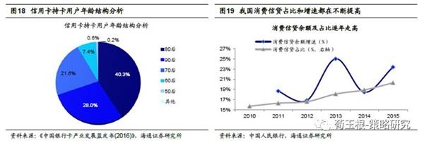 随着消费群体年龄结构变化,消费倾向提高。从年龄结构来,80后、90后人群的年龄结构在17-36岁之间,这部分人群已经进入消费高峰期。相对于上一代,年轻一代消费群体的消费需求更强,消费倾向更高。从消费信贷角度看,从2010年以来我国消费信贷余额增速平均保持在20%以上,消费信贷在整体贷款中的占比从2010年15%提高到2015年约20%。并且在我国消费贷款中,信用卡消费的占比也在不断提高。而80后、90后则是信用卡用户的主力军,合计占了信用卡持卡用户总量的68%,也说明80后、90后更倾向于超前消费。此外,近几年我国还涌现了类似蚂蚁花呗、京东白条等新型互联网批消费金融公司,互联网消费金融公司的出现也将推动我国消费信贷市场的不断增长,从而进一步推动我国消费服务产业发展。