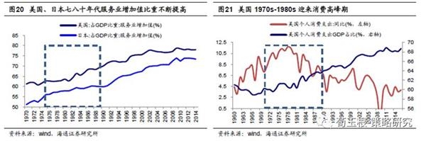 我国人均GDP约8000美元,消费服务业快速发展阶段。根据历史国际经验,钱纳里的工业化阶段理论将经济伴随人均收入增长而发生的结构转变过程划分为4个主要阶段:人均GDP<3000美元时,经济处于工业化初期阶段;在地区人均GDP在3000-6000美元之间时,经济处于以重工业和先进技术产业为主导的工业化中期阶段;当人均GDP在6000-12000美元时,进入工业化后期,工业占比开始逐步回落,服务业如金融、中介、房地产等新兴服务业迎来快速发展。居民消费快速扩张,总消费逐渐成为三大需求中的主力;当人均GDP> 12000美元后,经济进入后工业化阶段,第三产业占GDP比重具有绝对优势,科技创新成为引领产业结构升级的驱动力。截至2016年,我国人均GDP已经约8000美金,已经进入消费服务业快速增长的工业化后期,并且相当于美国、日本1975-1980年,相当于香港、韩国1985-1995年时期。从国际经验来看,70年代的美国、日本,85-95年期间的香港、韩国都迎来了消费需求的爆发和服务业占比的快速提高。近几年来消费在我国经济中重要程度也在不断提升,最终消费支出对GDP贡献率从2010年37%提升至2016年64.6%,消费已经成为支撑我国经济的重要力量。